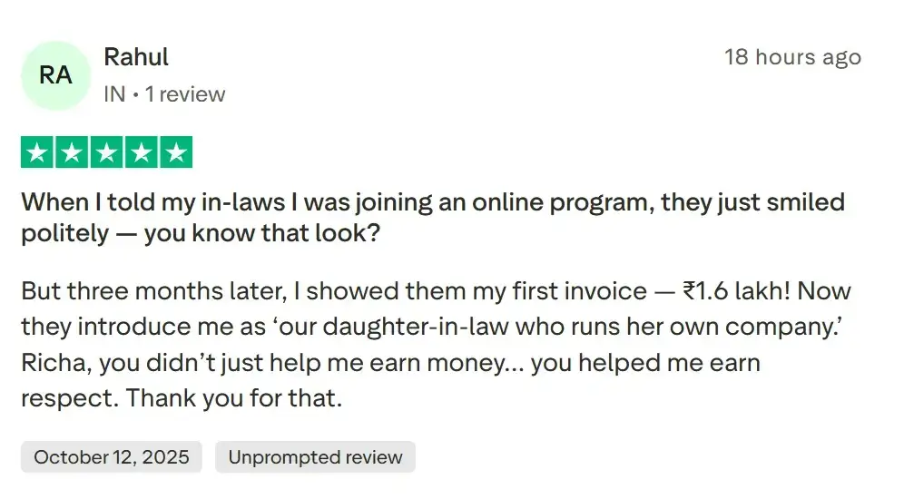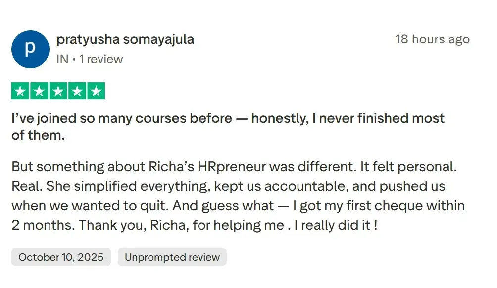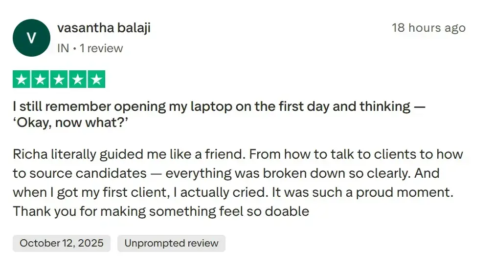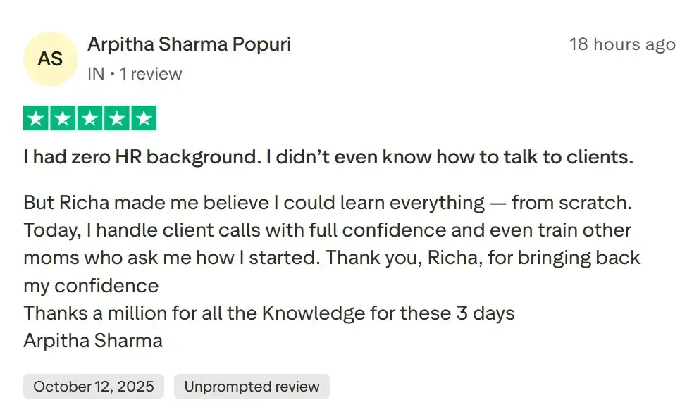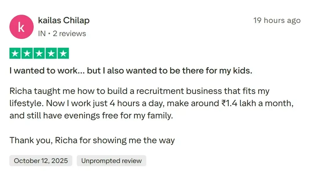 Richa Gandhi’s proven HRpreneur Launchpad Masterclass has already helped hundreds of women start their own home-Based Recruitment business.